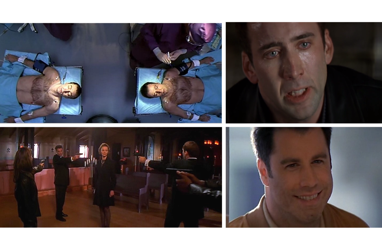 1997년 8월 9일 개봉 / 불굴의 FBI 요원 숀 아처(존 트라볼타)는 아들과 놀이동산에서 즐거운 시간을 보내고 있다. 하지만 그들을 노리는 한 남자! 악독한 테러범 캐스터 트로이(니콜라스케이지)가 숀을 향해 총을 쏜다. 총알은 숀의 가슴을 관통했고 품에 있던 아들 마이키는 사살된다. 숀은 마이키를 죽인 범인 캐스터를 쫓고 그 시간 캐스터는 엄청난 양의 폭탄을 LA 어딘가에 설치한다. 추적 끝에 숀과 캐스터가 마주하게 되고 캐스터 동생 플럭스는 잡히고 캐스터는 혈투 중 의식을 잃고 만다. 폭탄은 손에 넣었지만 폭탄의 정보를 알 수 없어 플럭스를 찾아가 심문하지만 절대 입을 열지 않는다. 숀의 상사가 어디론가 숀을 데려가고 그곳에는 캐스터가 식물인간 상태로 누워있다. 숀은 좌절하지만 그때 상사가 캐스터 트로이가 되어 보지 않겠냐고 제안한다. 그 말은 캐스터의 얼굴을 떼내어 숀의 얼굴에 이식하자는 것이었다. 하지만 숀은 단호히 거절했지만 다른 방법이 없자 얼굴 이식을 하기로 결정한다. 두 사람은 수술실로 들어가게 되고 수술은 성공적으로 끝이 났지만 숀은 자신을 비추는 거울 속에 캐스터가 있는 것을 보고 분노하게 된다. 하지만 임무는 계속 이어가기로 한다. 캐스터의 동생이 있는 교도소로 들어가 정보를 빼내려고 하지만 교도소 안에도 캐스터의 적들이 많았다. 한 죄수가 숀을 덮친다. 아니.. 캐스터를 덮치고 캐스터는 일방적으로 맞기만 하다. 그때 캐스터의 동생 플럭스는 캐스터를 의심스럽게 바라본다. 아차! 숀은 정신을 차리고 캐스터로 보이기 위해 상대 죄수를 잔혹하게 반격한다. 그렇게 플럭스에게 한발 가까이 다가가게 된다.