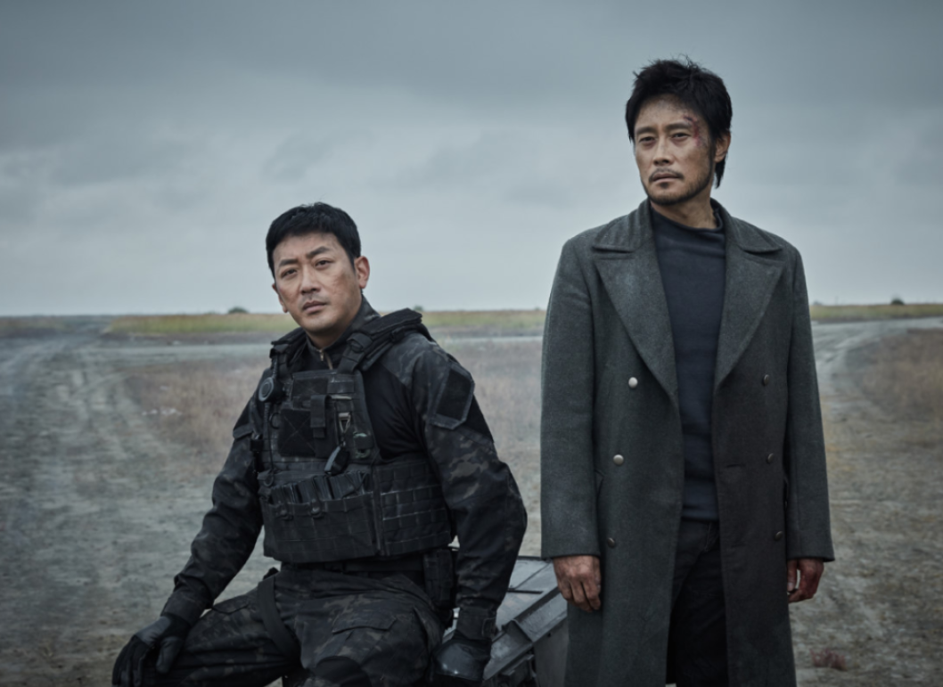 영화 백두산 등장인물 하정우와 이병헌. 자칫 무거울 수 있는 소재를 다룬 영화를 두배우가 적절하게 유머를 발휘하며 너무 무겁거나 가벼워지지 않는 적절한 장르의 영화를 완성시켰다.